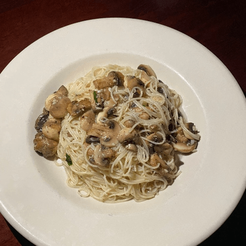 Fresh mushrooms and garlic in an oil sauce with your choice of pasta