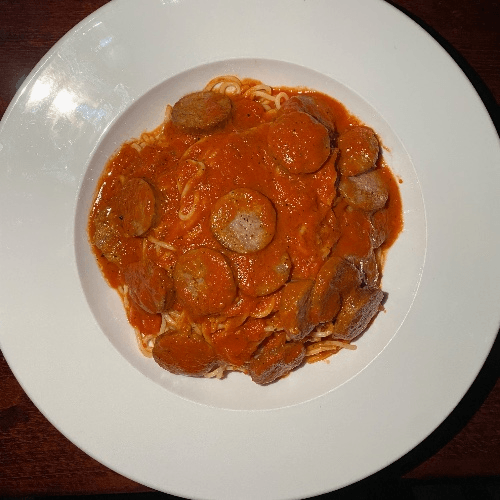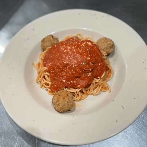 our house made spaghetti served with your choice of meat sauce meatballs or sliced Italian sausage