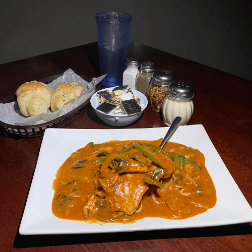 Tomato sauce with mushrooms, onions, and bell peppers