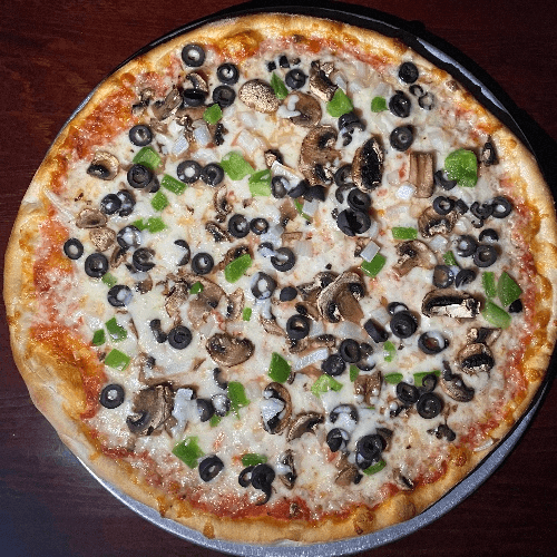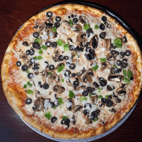 Mushrooms, green peppers, onions, and black olives