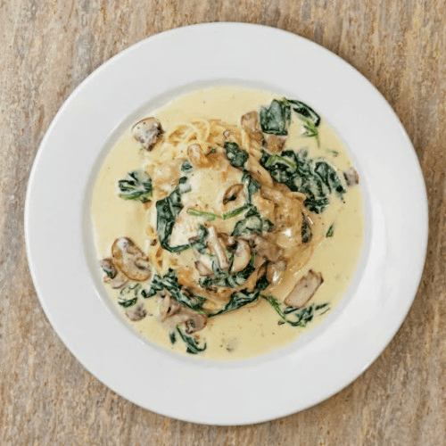 Sautéed mushrooms and spinach tossed with a brandy cream sauce