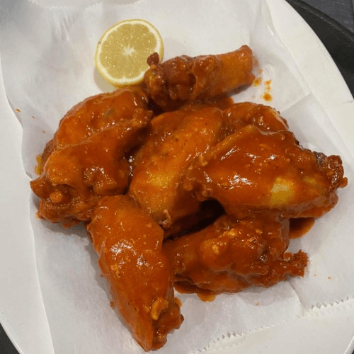 Sliced chicken, buffalo spicy sauce and mozzarella cheese
