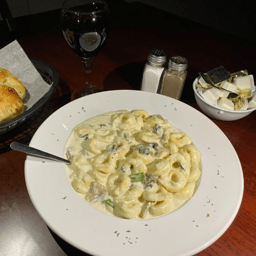 cheese stuffed tortellini tossed in our house made pink sauce add chicken for $10.00